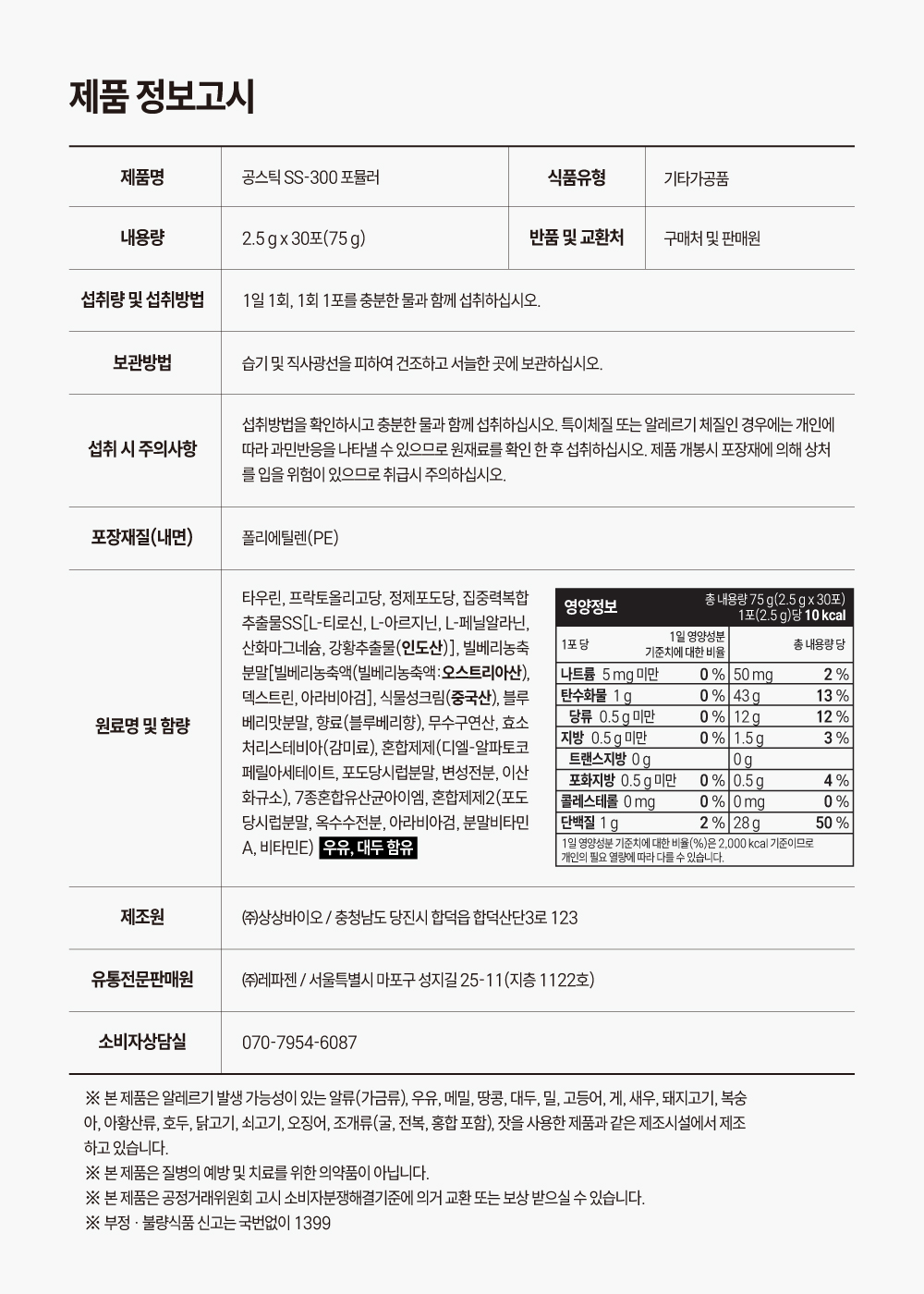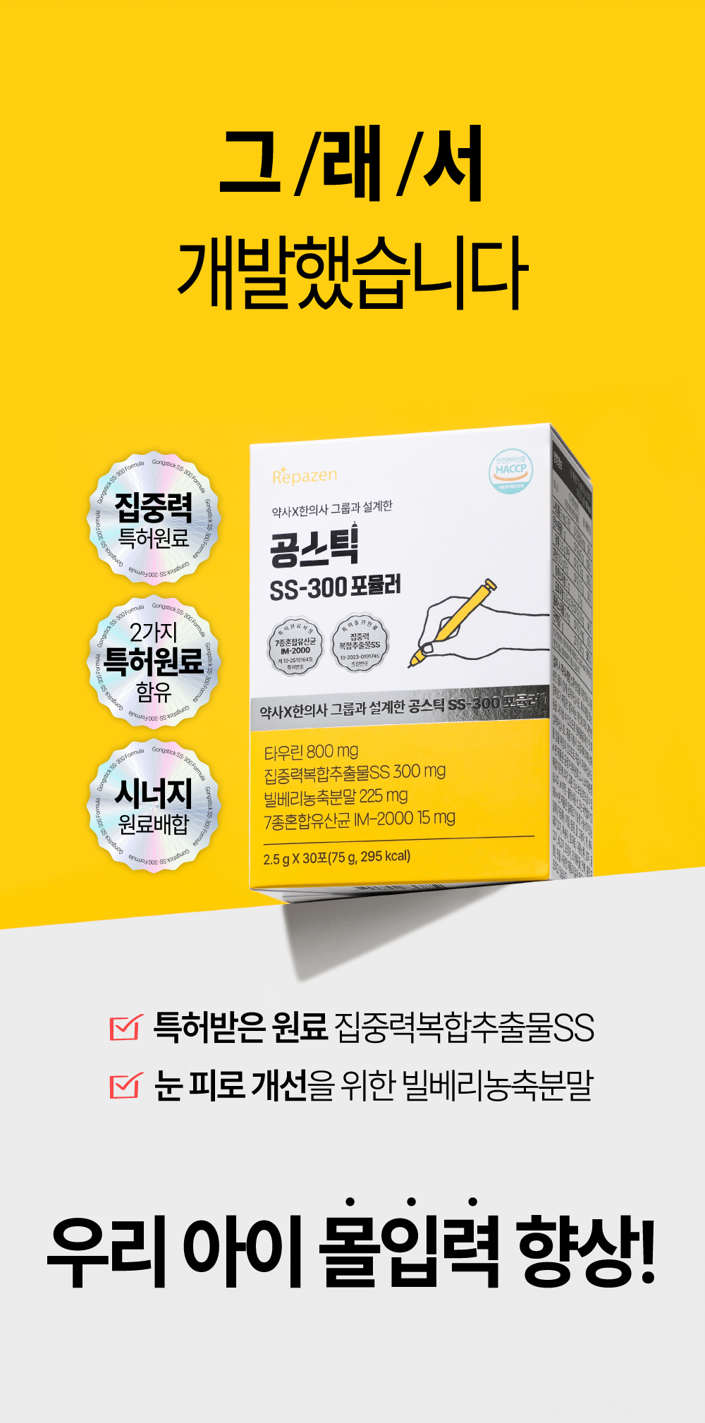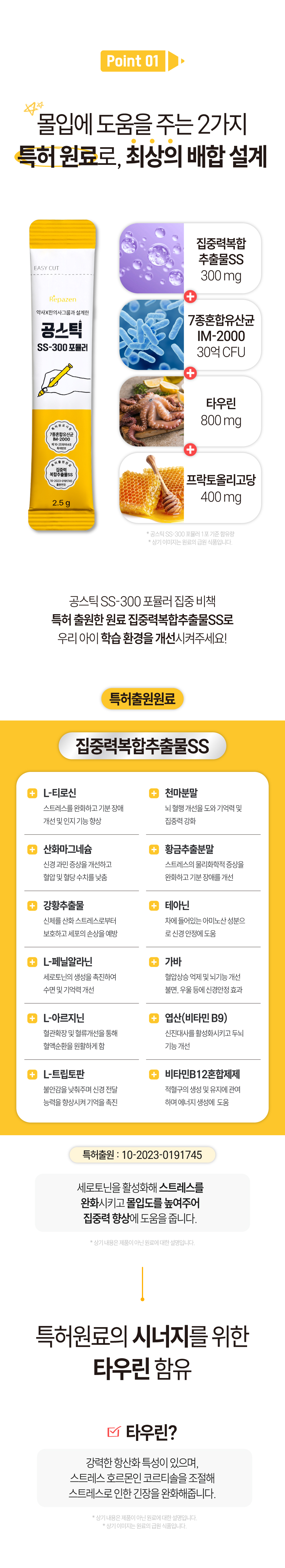 #집중력복합추출물SS #7종혼합유산균아이엠-2000 #타우린 #프락토올리고당 #비타민A #비타민E