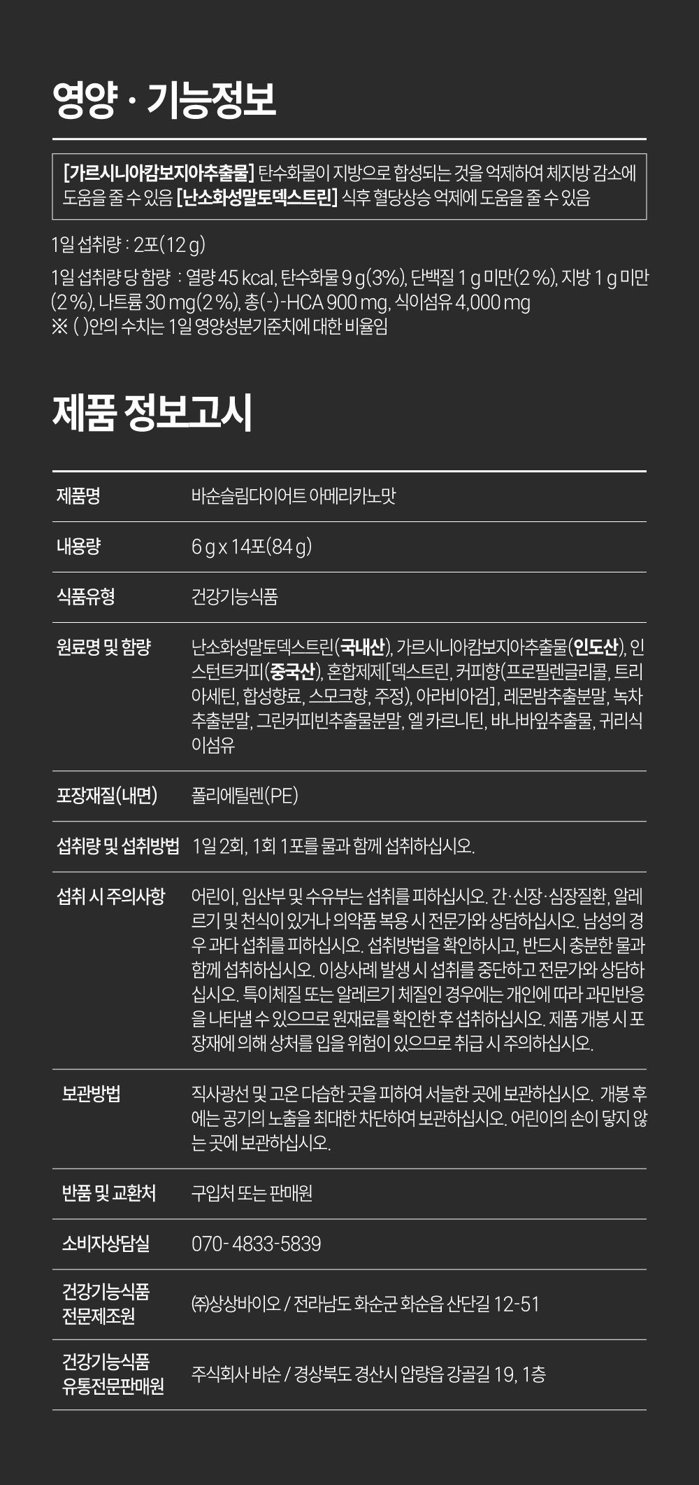 바순슬림다이어트 아메리카노맛