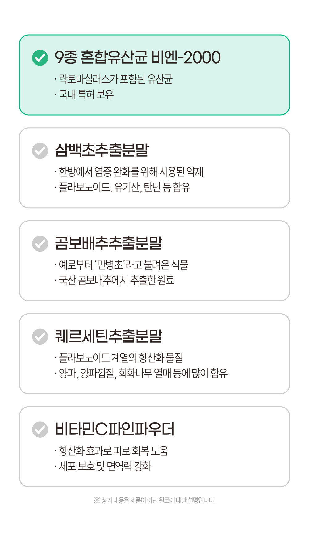 #9종혼합유산균비엔-2000 #삼백초추출분말 #퀘르세틴추출분말 #곰보배추추출분말