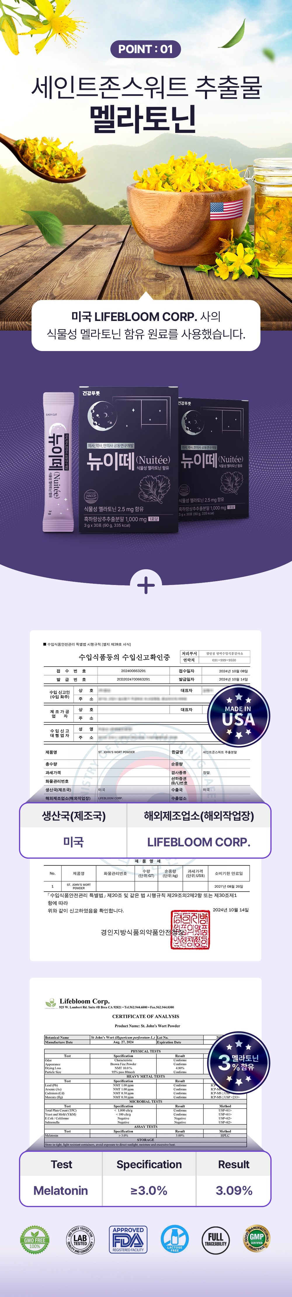 #식물성멜라토닌 #흑하랑상추추출분말 #세인트존스워트추출분말 #마음비타민멜라복합물